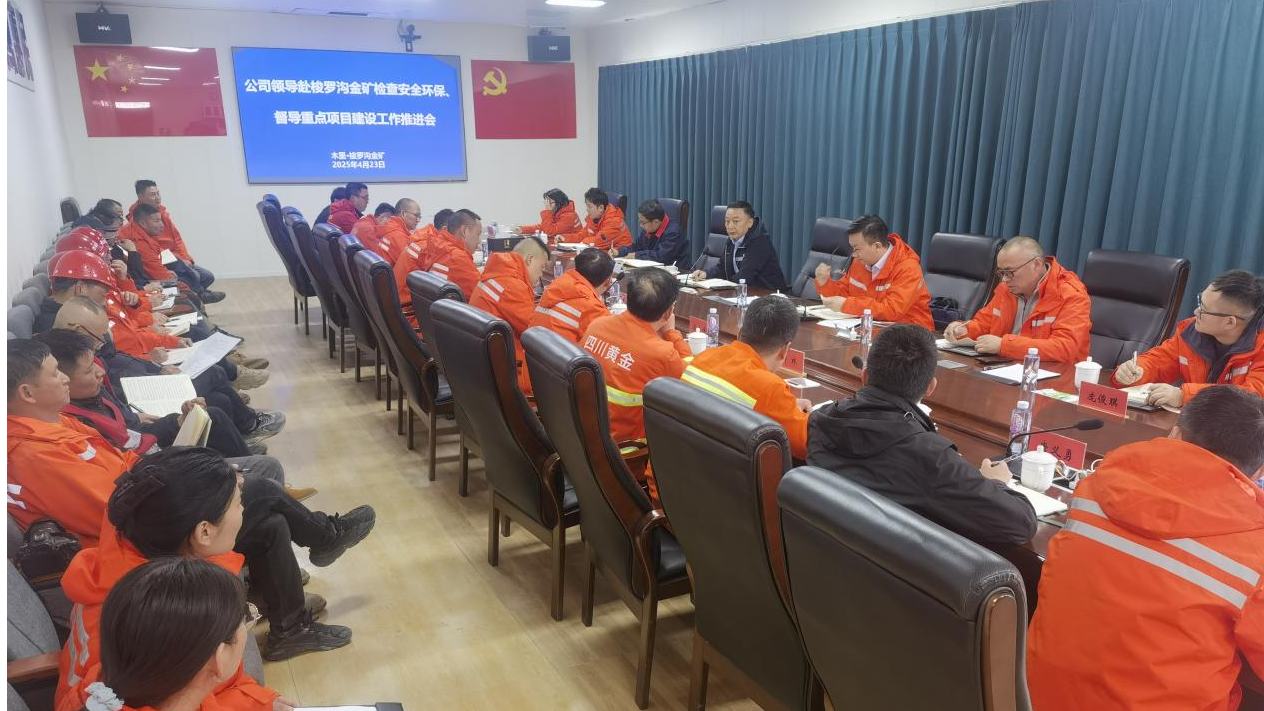 會(huì)上,檢查組聽(tīng)取了施工方及梭羅溝金礦關(guān)于礦山安全環(huán)保管理工作及重點(diǎn)項(xiàng)目推進(jìn)情況的匯報(bào)。
